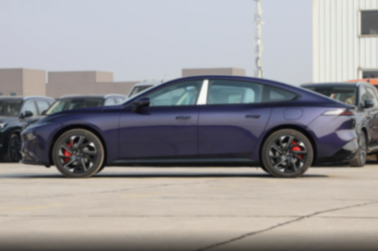車身側面采用了溜背式造型,這種設計讓線條感顯得格外流暢,也符合目前新能源轎車常見的設計語言,腰線則是貫穿式設計,不僅勾勒出車身側面的優(yōu)美曲線,還為整車增添了層次感,并且還配備隱藏式門把手、無框車門以及低風阻輪圈。此外,車輛的尾部經(jīng)過平直線條勾勒之后營造出了不錯的層次感,而貫穿式后尾燈不僅提升了車輛尾部的辨識度,還拉伸了整車的縱向寬度,而經(jīng)過高亮黑烤漆點綴的后保險杠則營造出不錯的質感。