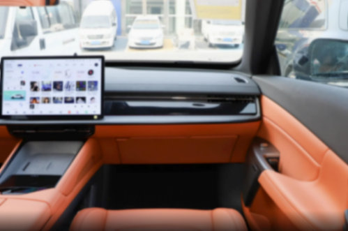 座椅方面,可以看出007如奕版的座椅采用了橙/黑配色,整體采用了仿皮材質進行包裹,并且擁有寬厚柔軟的護翼和舒適的坐墊,無論是設計和乘坐體感都十分舒適。另外,前排座椅還提供了加熱/通風、按摩以及頭枕揚聲器功能,舒適性方面足以保證。