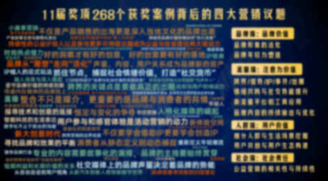 針對過去10年獲得金軒獎的案例,肖明超作為趨勢營銷專家,總結(jié)了它們?nèi)f變不離其中背后的四個基本議題。