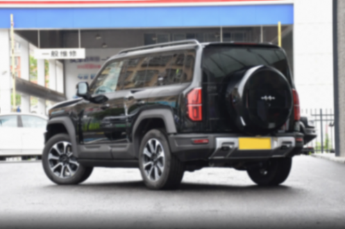 來到車側,外凸的前后輪拱,大面積的啞光輪眉和側裙護板讓方程豹豹5充滿了肌肉感,新車的三圍尺寸依次為4890/1970/1920mm,軸距為2800mm。為車尾設計簡潔且規則,外掛式備胎、側開門和帶護板的保險杠昭示著一輛硬派SUV應有的氣質,而后保險杠兩側還配備了兩個拖車錨點和一個拖車鉤(準拖掛車總質量為2500kg)從而滿足外出旅行時的需求。