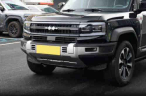 其次就是顏值方面,定位硬派SUV的方程豹豹5整車使用了當下流行的“方盒子”造型,整車輪廓方方正正,棱角分明。通過實車圖片就可以看出方程豹豹5的車頭格外硬朗,大尺寸中網進氣格柵與左右兩側大燈融為一體,下方前凸的前包圍加入了銀色護板,并進行了鏤空處理,而發動機艙蓋上隆起的進行營造出硬派SUV車型與生俱來的力量感。