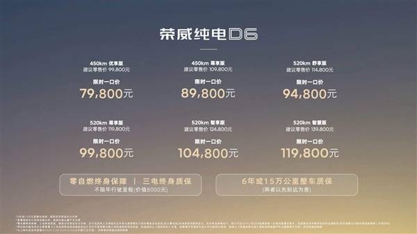 此外,為打消用戶的質量疑慮,榮威純電D6給出三電終身質保、6年或15萬公里整車質保的政策。