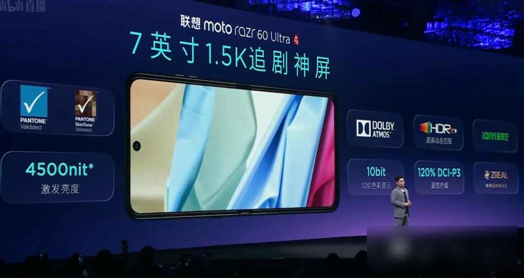 發布會一開始先講折疊屏,razr 60 Ultra是頂配款,外屏4英寸能刷視頻,內屏7英寸像小平板。用的是驍龍8至尊版芯片,電池4700mAh支持快充,還有個鈦合金鉸鏈,說能減少折痕。價格5999元起,但很多人覺得這個價格不如買華為或者三星的折疊屏。