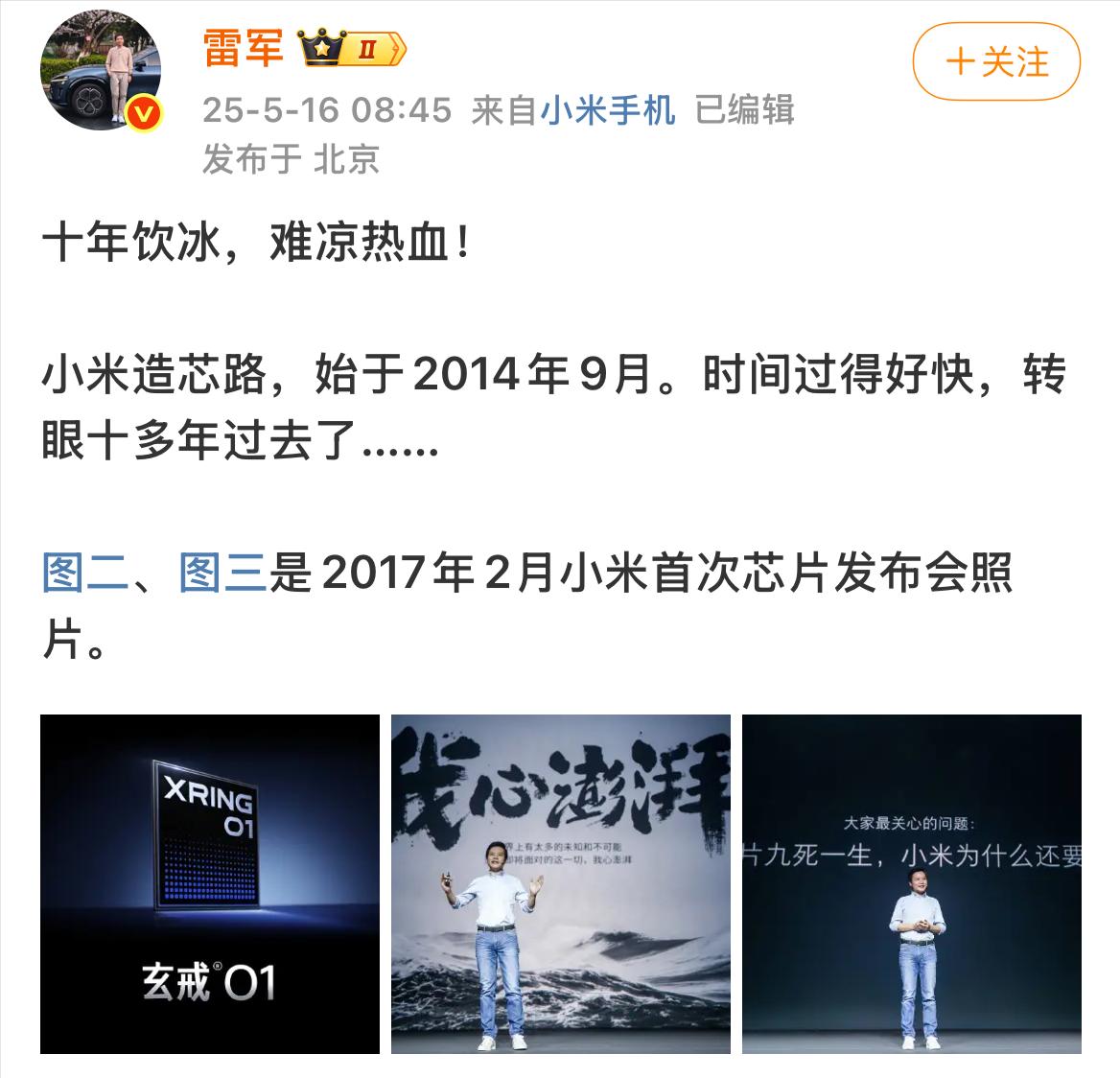 5月16日,小米創辦人、董事長兼CEO雷軍發文回憶小米造芯路:十年飲冰,難涼熱血!小米造芯路,始于2014年9月。時間過得好快,轉眼十多年過去了……