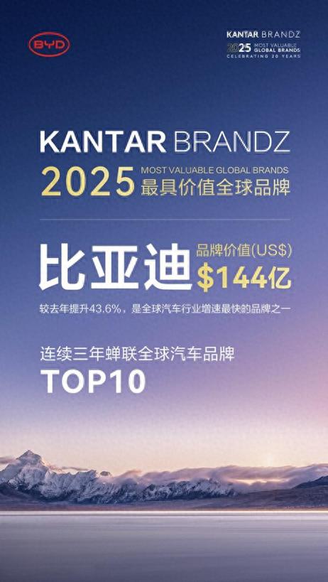 國際權(quán)威機(jī)構(gòu)凱度BrandZ最新榜單顯示,比亞迪以144億美元品牌價(jià)值沖入全球汽車品牌第六名,連續(xù)三年穩(wěn)居前十,其43.6%的價(jià)值增速遠(yuǎn)超行業(yè)平均水平。這一成績不僅標(biāo)志著中國汽車品牌的歷史性突破,更揭示了比亞迪在全球新能源賽道上的獨(dú)特打法:以技術(shù)創(chuàng)新為矛,以全球化布局為盾,但海外市場的復(fù)雜生態(tài)仍暗藏隱憂。