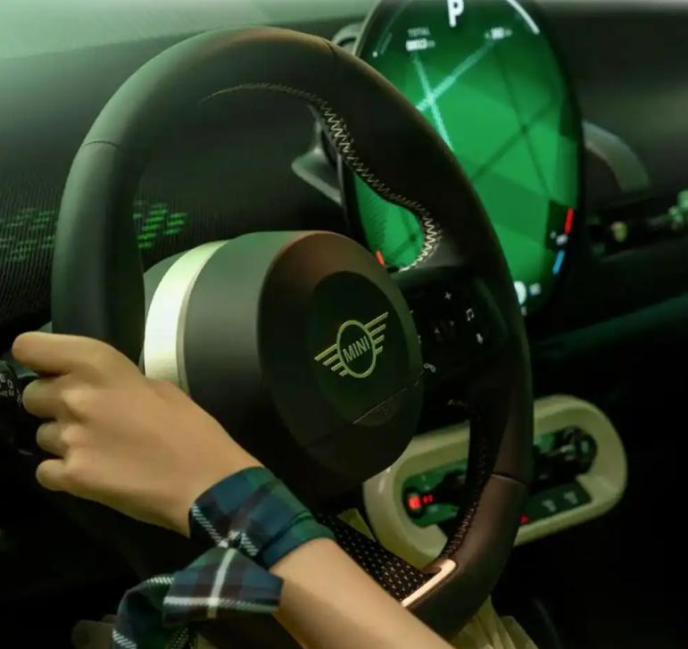 從外觀上看,綠野迷蹤限定配色以清新的綠色為主色調,這種綠色并非普通的翠綠,而是經過精心調配,既有著大自然中青草的鮮嫩,又帶著一絲深邃,仿佛是在茂密森林中探尋到的神秘色彩。車頂采用浮光白配色,與綠色車身形成強烈的撞色效果,不僅延續了MINI標志性的“懸浮式車頂”設計,更增添了一份活潑與靈動。標志性的圓形大燈組,搭配全新八邊形進氣格柵,以及前艙蓋隆起的多條筋線,讓整車看起來動感十足。矩陣式LED尾燈融入米字旗元素,在點亮后極具辨識度,大尺寸擴散器與黑色飾板則強化了尾部的層次感與力量感,即使車輛靜止,也仿佛蓄勢待發。