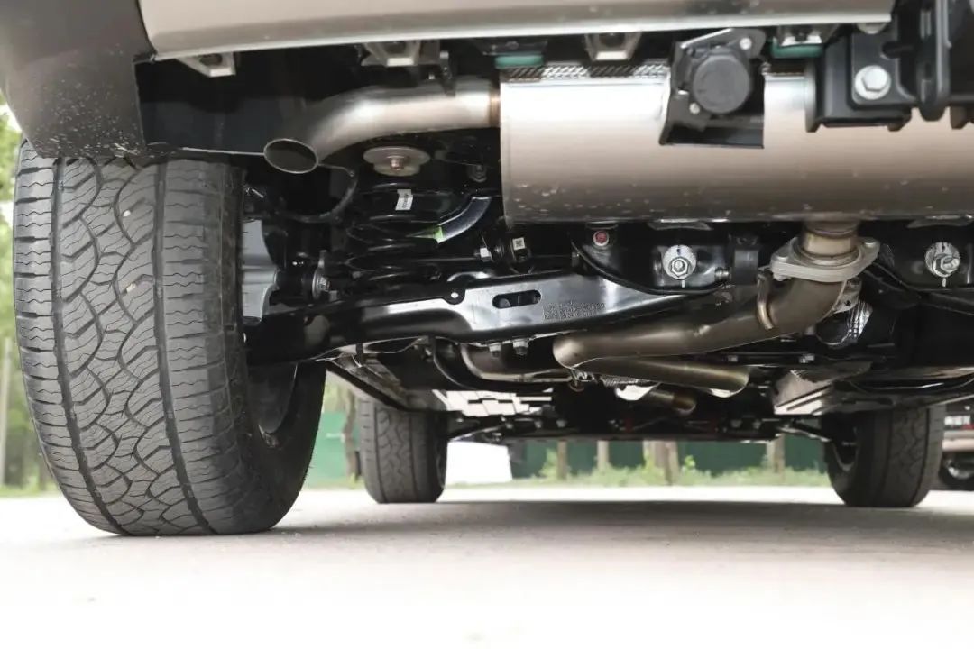 越野能力方面,第六代智能四驅系統,響應速度快至200毫秒。后橋配備了電控機械牙嵌式差速鎖,這是真正的硬核配置,可以實現剛性鎖止,將百分之百的扭矩輸出到有附著力的一側車輪,脫困能力不俗。多地形模式支持沙地、雪地、泥地等九種駕駛場景。