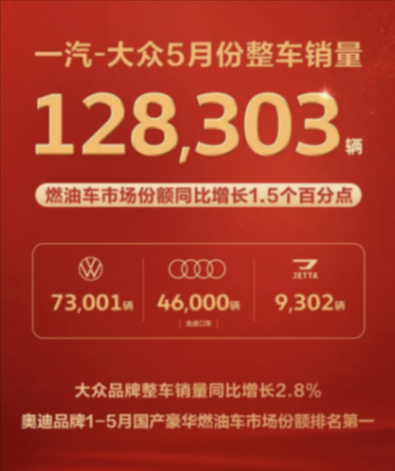 6月2日消息,2025年5月,一汽-大眾的銷量數(shù)據(jù)正式公布,銷量達(dá)到了128303輛,其中大眾品牌銷量為73001輛,同比增長(zhǎng)2.8%。