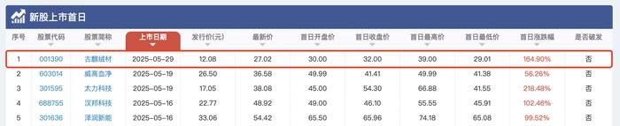 回顧上周(5月26日—5月30日),A股迎來了1只“新成員”。古麒絨材登陸深市主板,在首日表現中,其大漲164.9%。