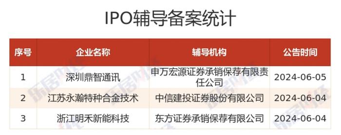 另外,截止統計時間,IPO輔導備案增加3家,環比上升200%。