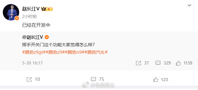 繼華為之后,銷售事業部總經理趙長江也表態騰勢的揮手開關門功能正在開發中。