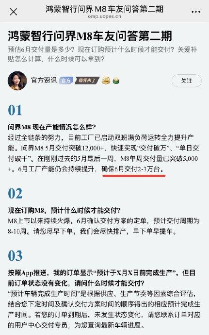 問界M8太猛了,5月交付破萬后,6月的產能進一步拉升,可以交付2-3萬輛[并不簡單]給市場來一輪大屠殺啊。