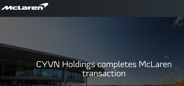 今年4月,中東投資公司阿布扎比政府基金CYVN Holdings(以下簡稱CYVN)正式完成了對邁凱倫交易,并宣布將整合其英國業(yè)務(wù)。