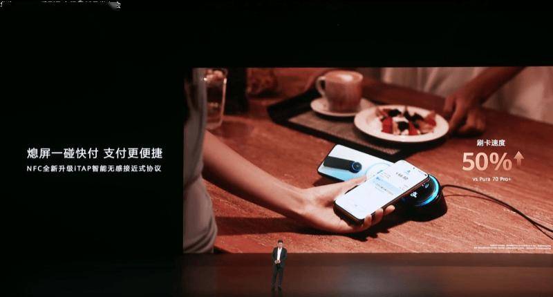 在刷卡速率方面,華為以“支付寶碰一下”為演示案例,在此前的基礎上進一步縮短了時間。華為Pura 80系列手機采用iTAP協議,熄屏“碰一下”后點擊支付,即可解鎖手機完成支付。