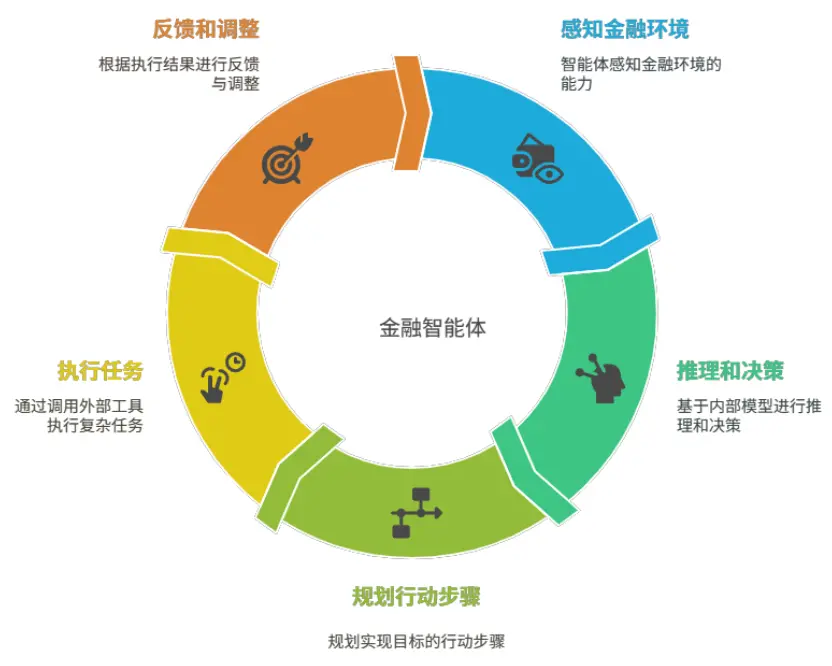 金融智能體(Financial AI Agent)是一個具備一定自主性的AI實體,它能夠感知其所處的金融環境,基于內部的模型或知識進行推理和決策,規劃實現目標的行動步驟,并通過調用外部工具或系統接口來執行復雜金融任務,并根據執行結果進行反饋和調整。