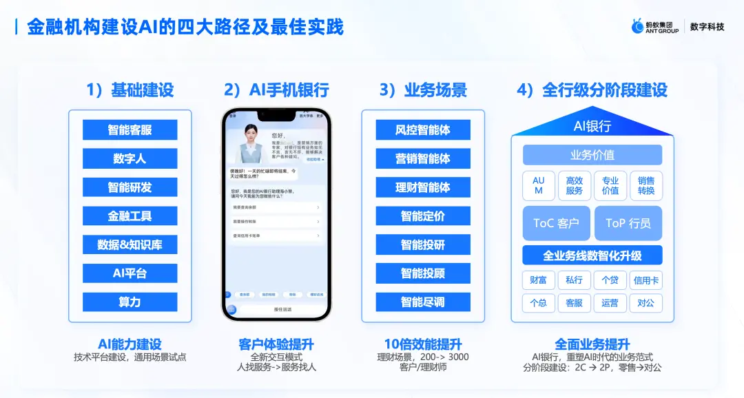 基于對金融智能體的落地經驗,螞蟻數科總結了四條路徑: