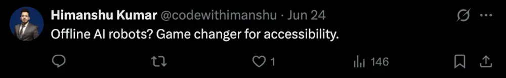 對此,有網友認為,谷歌的脫機AI機器人存在改變游戲規則的可能性。