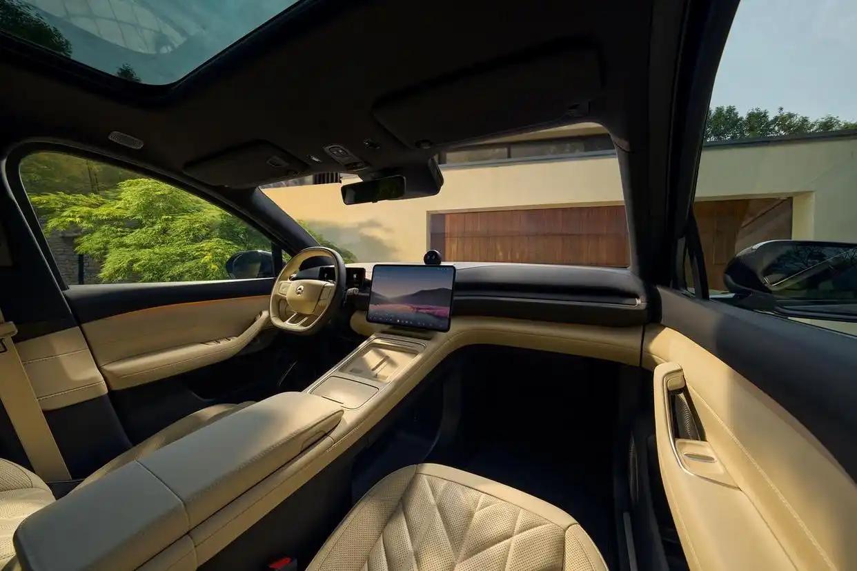 內飾方面,新車整體預計將換裝全新ES6的內飾設計,中控臺采用全液晶儀表盤,搭配12.8懸浮式中控大屏+HUD抬頭顯示的設計布局。配置方面,可能會搭載自研的芯片,支持360°環繞影像、地圖導航、升級版的PanoCinema全景數字座艙、OTA升級等。此外,由旋鈕式換擋邏輯,換成懷擋換擋邏輯,可以為中間的扶手箱位置空出更大的儲物空間。智駕方面,新車將搭載旗艦級AQUILA天鷹座超感系統,中間為瞭望塔式布局的超遠距前激光雷達,雙側廣角激光雷達與4D成像雷達,駕駛輔助硬件看齊蔚來ET9,并有望搭載蔚來自研的神璣NX9031駕駛輔助芯片,還會應用蔚來世界模型NWM。