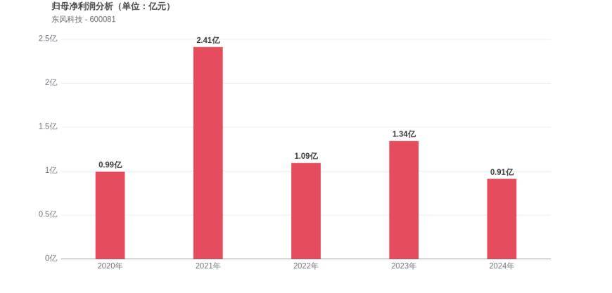 利潤角度分析,2020年東風科技實現歸母凈利潤0.99億元,2024年0.91億元。近五年利潤波動較大,2021年一度增長94.02%,但2022年和2024年均出現較大幅度下滑。