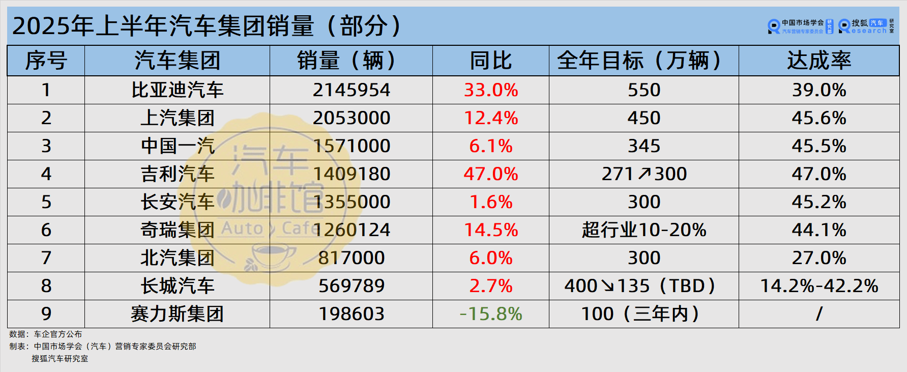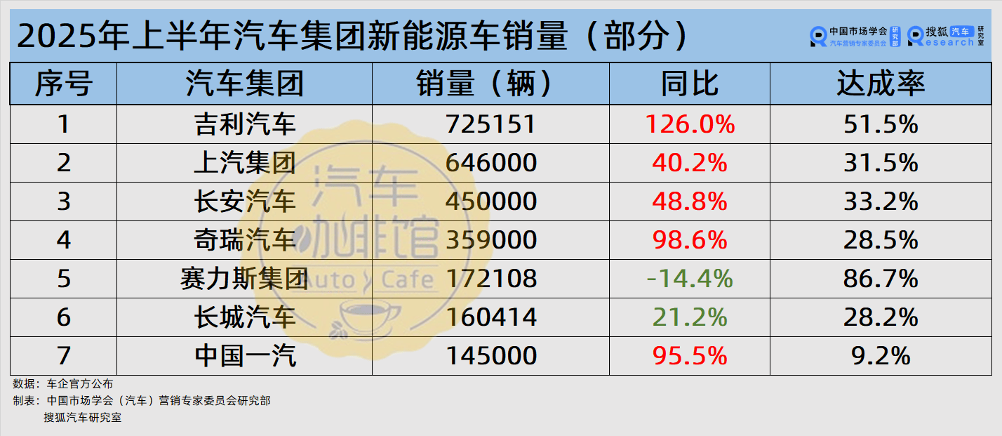2025年上半年中國車市“期中考”成績單揭曉,比亞迪、上汽、一汽位列前三。5家汽車集團的年銷目標達成率旗鼓相當,均在四成左右。
