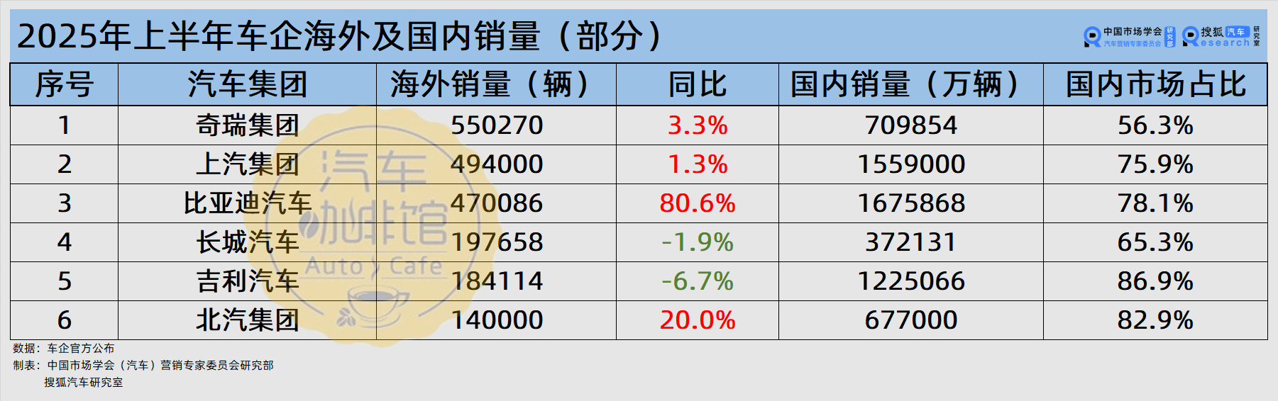 目前已發布上半年海外銷量的6家汽車集團中,奇瑞集團和上汽集團的表現依舊穩定,比亞迪正在迎頭趕上。