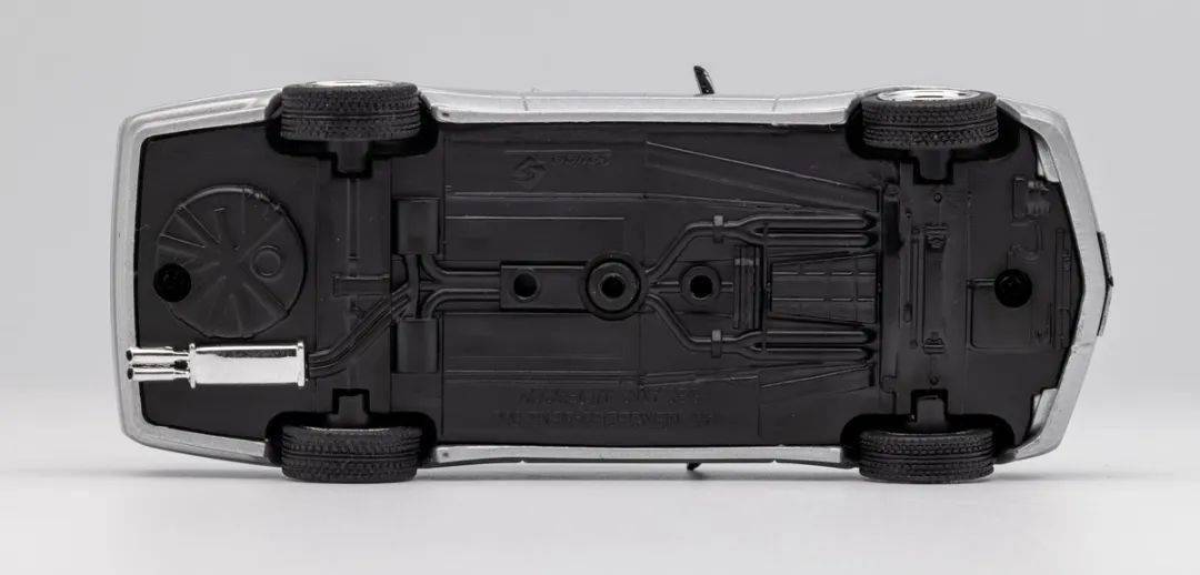 模型的懸掛控制得還算過得去,而輪轂為電鍍的大餅輪轂,輪轂的整體質感不錯;雖然鏤空面積很小,但貌似剎車碟和剎車鉗也有刻畫。