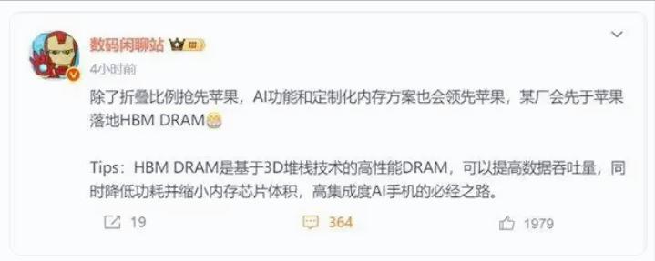我當時看到這個爆料,腦子嗡的一下。說真的,誰能想到,手機圈卷AI卷到這一步,連高帶寬內(nèi)存(HBM)都要上了?還是華為,沖得比蘋果還猛,你說是不是有點瘋狂?華為這波操作,真有點不走尋常路的意思