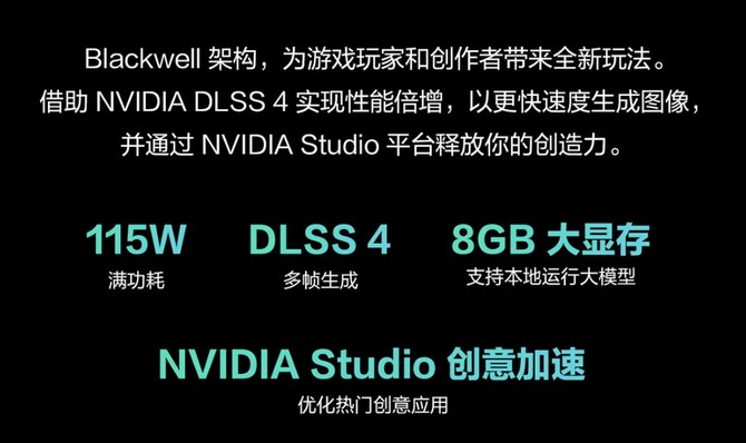 GeForce RTX™ 50系列筆記本電腦GPU搭載NVIDIA Blackwell架構,為游戲玩家和創作者帶來全新玩法。RTX 50系列具備強大的AI算力,RTX 5060 GPU AI 算力 572 TOPS,帶來升級體驗和更逼真的畫面。