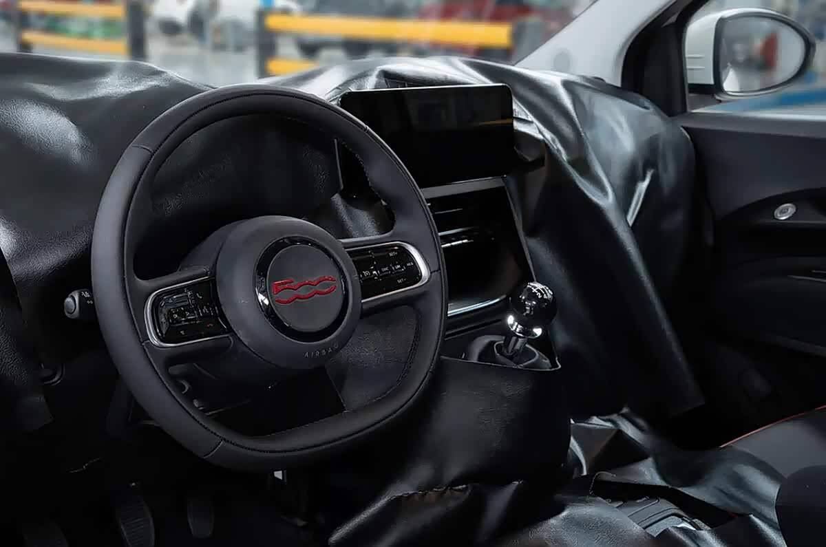 走進車內,菲亞特500混動版在保留復古韻味的同時,也加入了諸多現代科技元素。橢圓形邊框的懸浮式小尺寸中控屏幕與圓形液晶儀表盤組成雙屏系統,雖屏幕不大,但該有的科技感一點不少。整個中控臺面采用撞色配色,與外觀風格相呼應,精致的手動式檔桿呈懸浮設計,上方是標準的空調控制區域。座椅采用可愛的包裹風格,多種材質和顏色堆疊,再加上500刺繡,時尚感十足。值得一提的是,中控區域換上了更大的儲物格,換擋桿移到了方向盤旁邊,這一設計既致敬了老款燃油版500,又符合現代操作習慣。新車還配備了10.25英寸中控屏,支持Uconnect 5.0系統,具備無線CarPlay和Android Auto功能,此外,緊急制動、車道偏離預警、交通標志識別等安全配置也一應俱全。