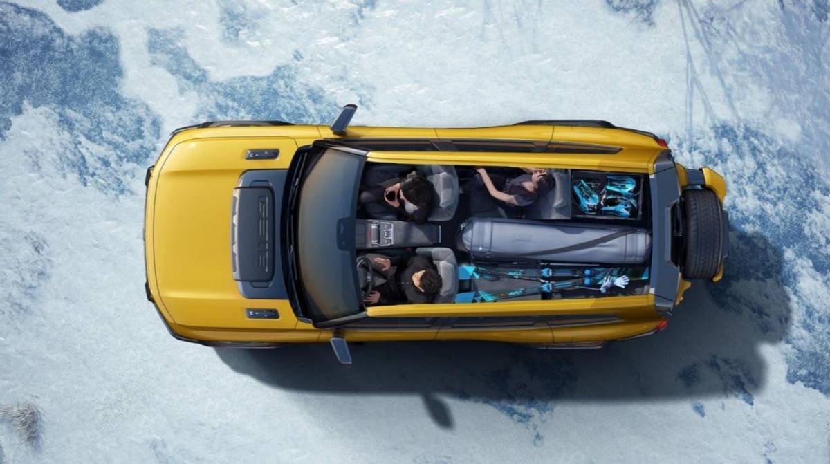 深藍G318原廠提供豐富的拓展選裝件,車頂預留了行李架安裝接口,車尾贈送了1.6T拖鉤。3.3kW內放電可以帶動車載冰箱、無人機。6kW外放電能供應8個帳篷使用。也可以把車看作“充電寶”,一升油可發電3.63kWh。還能18kW車對車充電,為同行車輛快速補能。