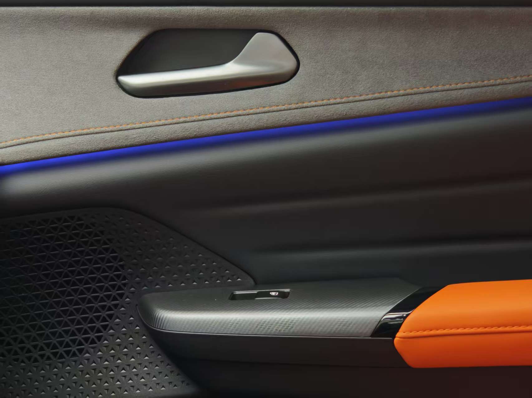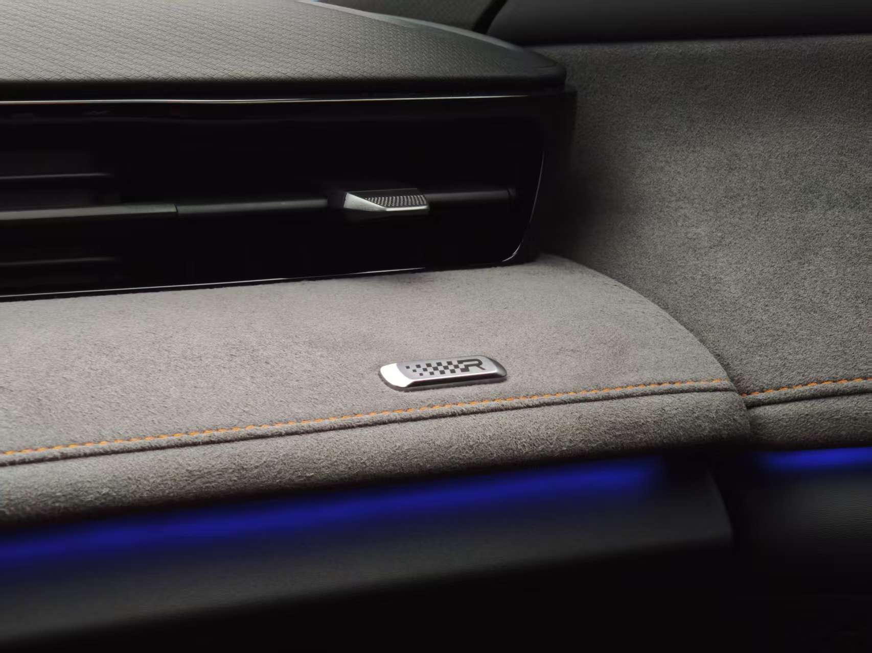 內飾在材質用料凸顯誠意:麂皮包覆中控臺拼接碳纖維飾板,一體式運動座椅采用雙密度發泡材質,側向支撐提升30%。細節上,256色氛圍燈與18揚聲器音響營造沉浸氛圍,50W無線快充+雙層中央通道儲物設計兼顧實用。