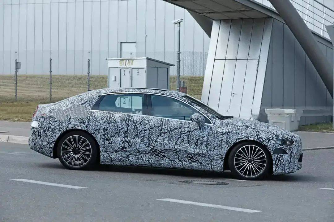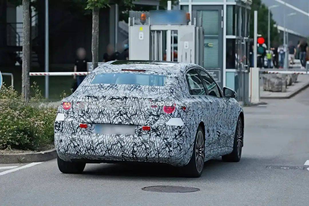 從諜照中不難發(fā)現(xiàn),新車被厚厚的偽裝覆蓋,但仍能辨識(shí)出一些關(guān)鍵設(shè)計(jì)元素。封閉式前格柵和隱藏式門把手設(shè)計(jì)清晰可見,大燈造型尚處于測試階段,預(yù)計(jì)量產(chǎn)時(shí)將采用帶有奔馳標(biāo)志性“三叉星”的燈組,以彰顯家族特色。