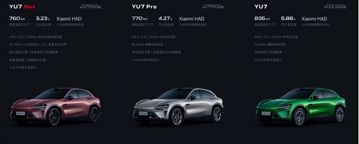 與小鵬G7相反,小鵬G7是以入門版車型為準,續航逐漸變高,小米YU7則是以入門版為準,續航逐漸降低。