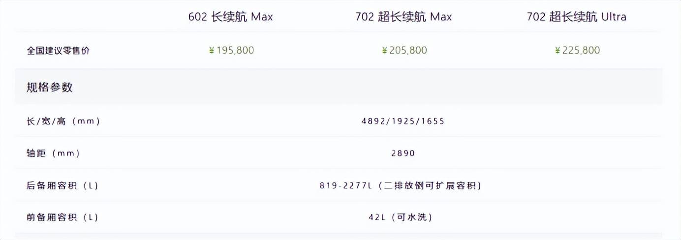 再看小米YU7,價格為25.35萬元-32.99萬元,車長4999mm,軸距達3000mm,前備箱容積為141L,后備箱容積為678L,CLTC續航里程方面,25.35萬元的入門版YU7,續航里程為835km,Pro版本的續航里程為770km,Max版本的續航里程為760km。
