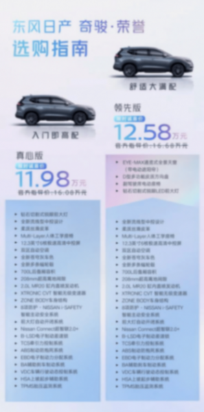 在將目光轉至奇駿·榮譽。在新能源汽車滲透率突破40%的市場環境下,東風日產以逆向思維推出奇駿·榮譽,通過智能化升級和降低門檻,為緊湊型SUV市場提供了新的選擇。