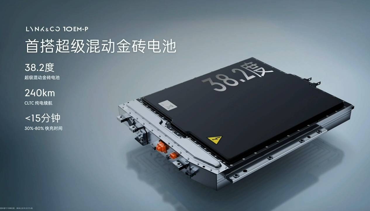 作為一款插混轎車,領克10 EM-P將會搭載38.2度的超級混動金磚電池,CLTC純電續航達到240km,不到15分鐘即可將電量從30%充至80%。