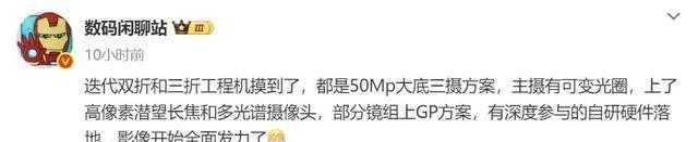 還是那個愛說消息的人,他以前說過,工廠里那些能折兩下和折三下的樣機,都有三個大大的攝像頭。每個都是五千萬像素。
