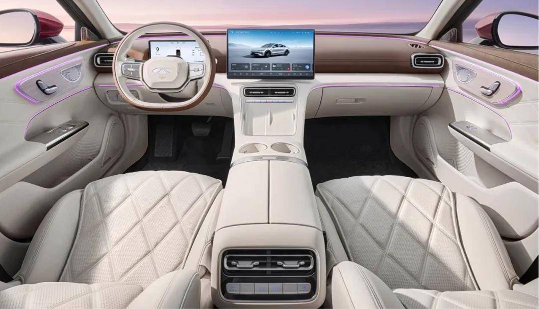 在設計上,嵐圖FREE+由外到內都去個性化了。前臉換裝流星效果的貫穿燈組,側面配備密輻條米其林輪胎,后包圍換成車身同色樣式。外觀設計弱化了運動感,提升了精致感。車內也簡約溫馨化,基本看不到什么實體按鍵了,因為新車將首批搭載鴻蒙座艙5,操作體驗和交互能力都更強。還一次性配齊了女王副駕座椅、7L雙側開門的冷暖冰箱、22個揚聲器,方方面面都更到位。