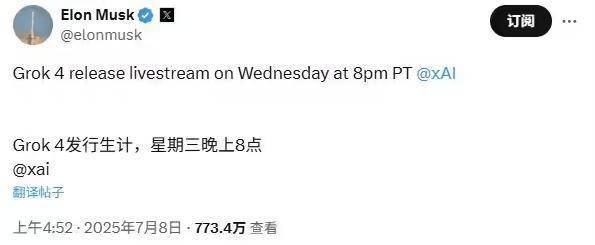 近日,科技界迎來一則重磅消息,特斯拉及SpaceX的創(chuàng)始人埃隆·馬斯克,在個人社交媒體上預(yù)告了一項技術(shù)新突破。他宣布,備受矚目的xAI新一代人工智能模型——Grok 4,將于太平洋時間周三夜晚8點正式亮相,換算至北京時間,則是周四早晨11點。屆時,這一科技盛事將通過X平臺進行全球直播。