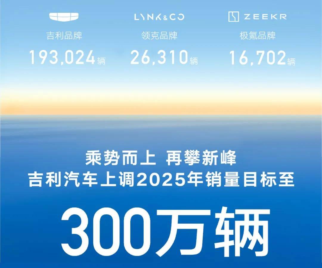 基于此,吉利決定將全年銷量目標(biāo)從271萬輛上調(diào)至300萬輛。