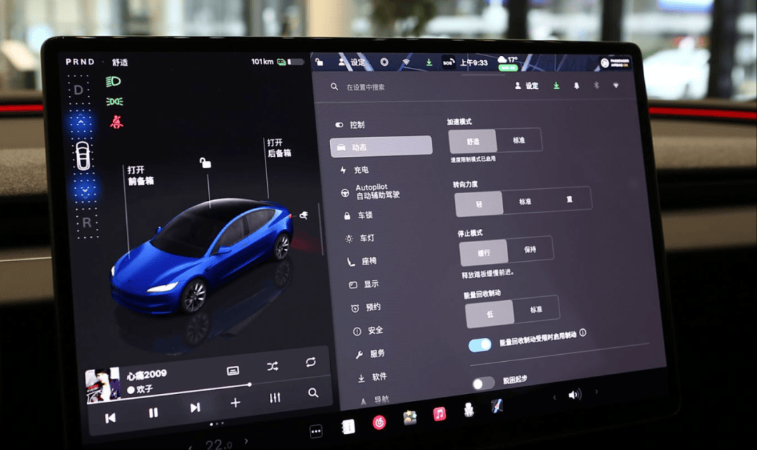 就在于早期特斯拉取消了動能回收可調(diào)節(jié)選項(xiàng)。