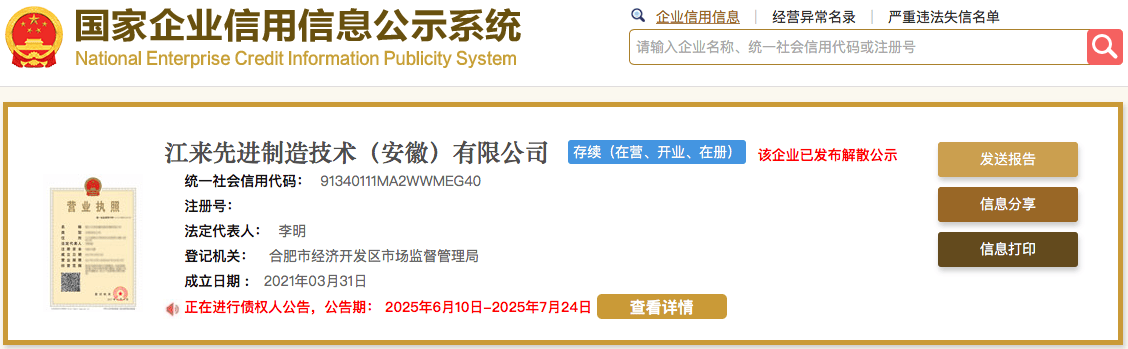 蔚來曾夢想過自己掌控全局,如今,它終于醒了。隨著NeoPark園區落成、自有生產資質獲批,蔚來終于有底氣跟江淮說再見。6月公示系統顯示,江來先進制造公司將注銷,蔚來與江淮徹底分道揚鑣。