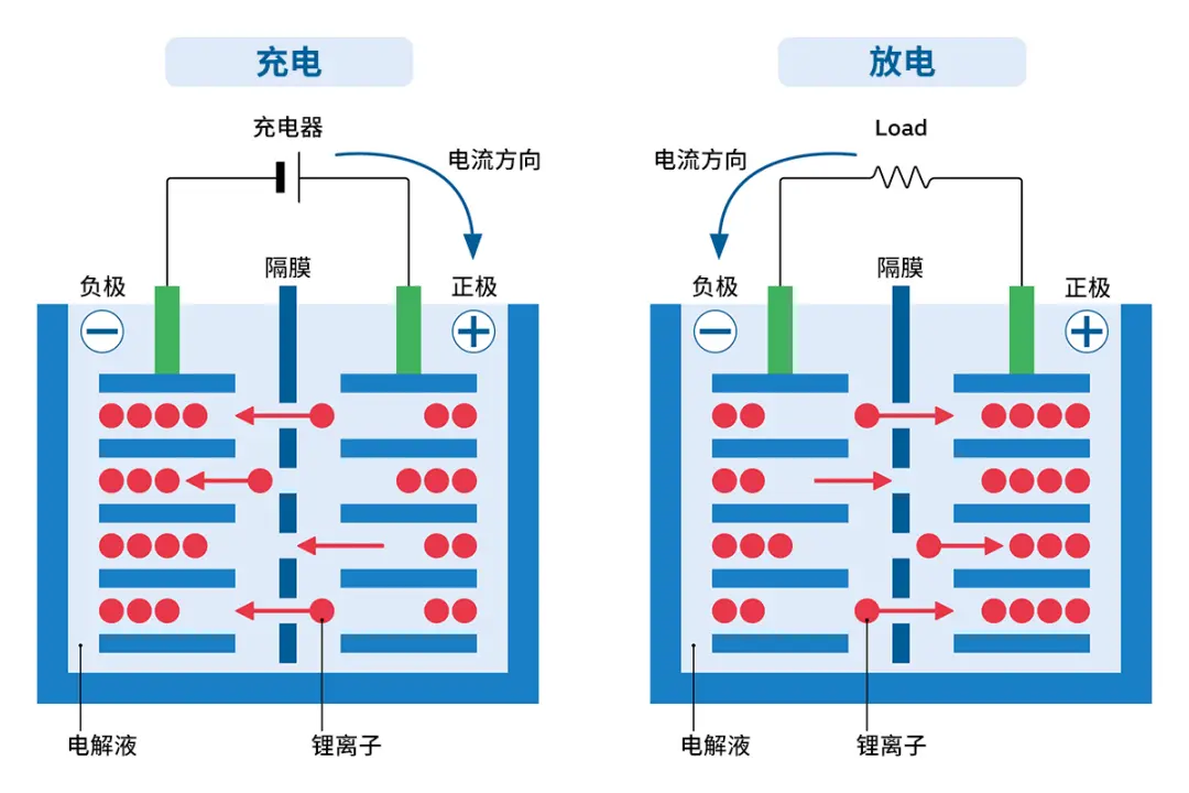 作為一種二級電池(可充電電池),鋰離子電池能夠重復充放電,依靠的就是這些在電解液中自由流動的帶正電荷的鋰離子——它們在受到外界電壓后從正極遷移向負極,在向外釋放電壓時從負極移向正極,就完成了一次最簡單的「充電——放電」循環。從原理和工藝設計上,這些化學反應都是完全可逆的。