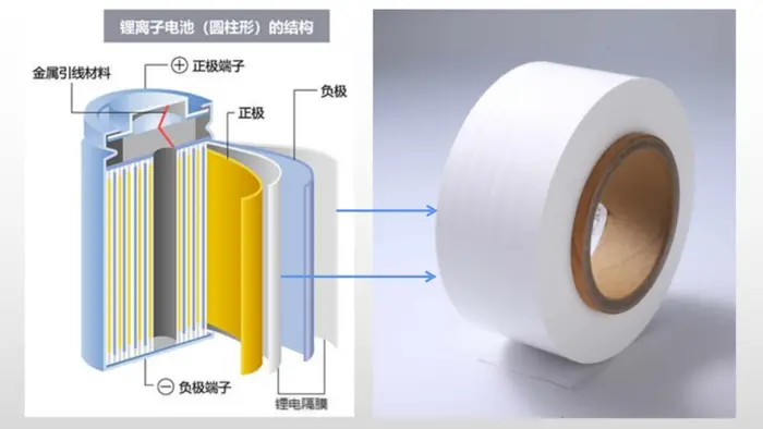 正如原理圖所展示的,「隔膜」是每一塊鋰離子電池內部都不可或缺的材料:它們不僅要在強腐蝕性的電解液中保持自身的物理和電化學性質穩定,更是要在輕薄和抗穿刺抗拉伸性能之間實現平衡,這樣才能在維持鋰離子自由流動的效率(也就是充放電效率)的同時在日常的磕碰中保持電池穩定。