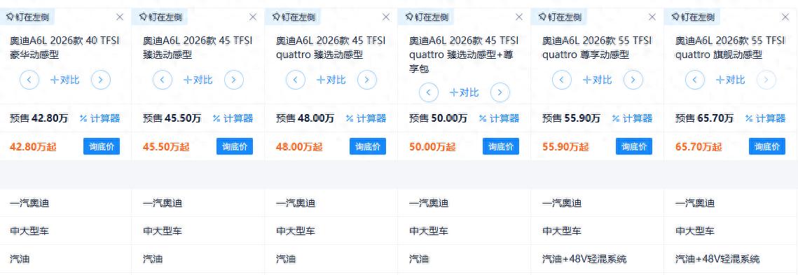 我們興沖沖地打開奧迪的官網,對照參數表才發現,全新26款奧迪A6L居然又是現款車型再次更新迭代。你說是不是物盡其用到了極致呢?