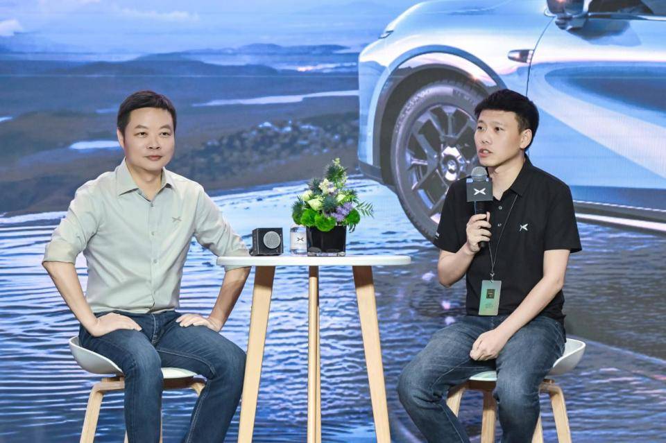 小鵬汽車董事長(zhǎng)、CEO何小鵬(左)與小鵬SUV產(chǎn)品線負(fù)責(zé)人Nick(右)接受媒體采訪
