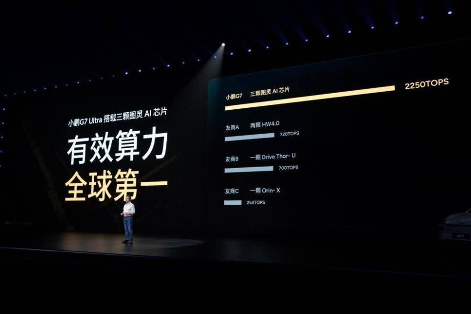 以小鵬G7 Ultra為例,這款新車首發(fā)搭載了3顆小鵬汽車自研的圖靈芯片,何小鵬稱其“有效算力一顆頂三顆”,整車有效算力高達(dá)2250 TOPS。其中,兩顆圖靈芯片服務(wù)于VLA-OL智能輔助駕駛大模型,另一顆圖靈芯片搭配驍龍829芯片服務(wù)于VLM大模型。