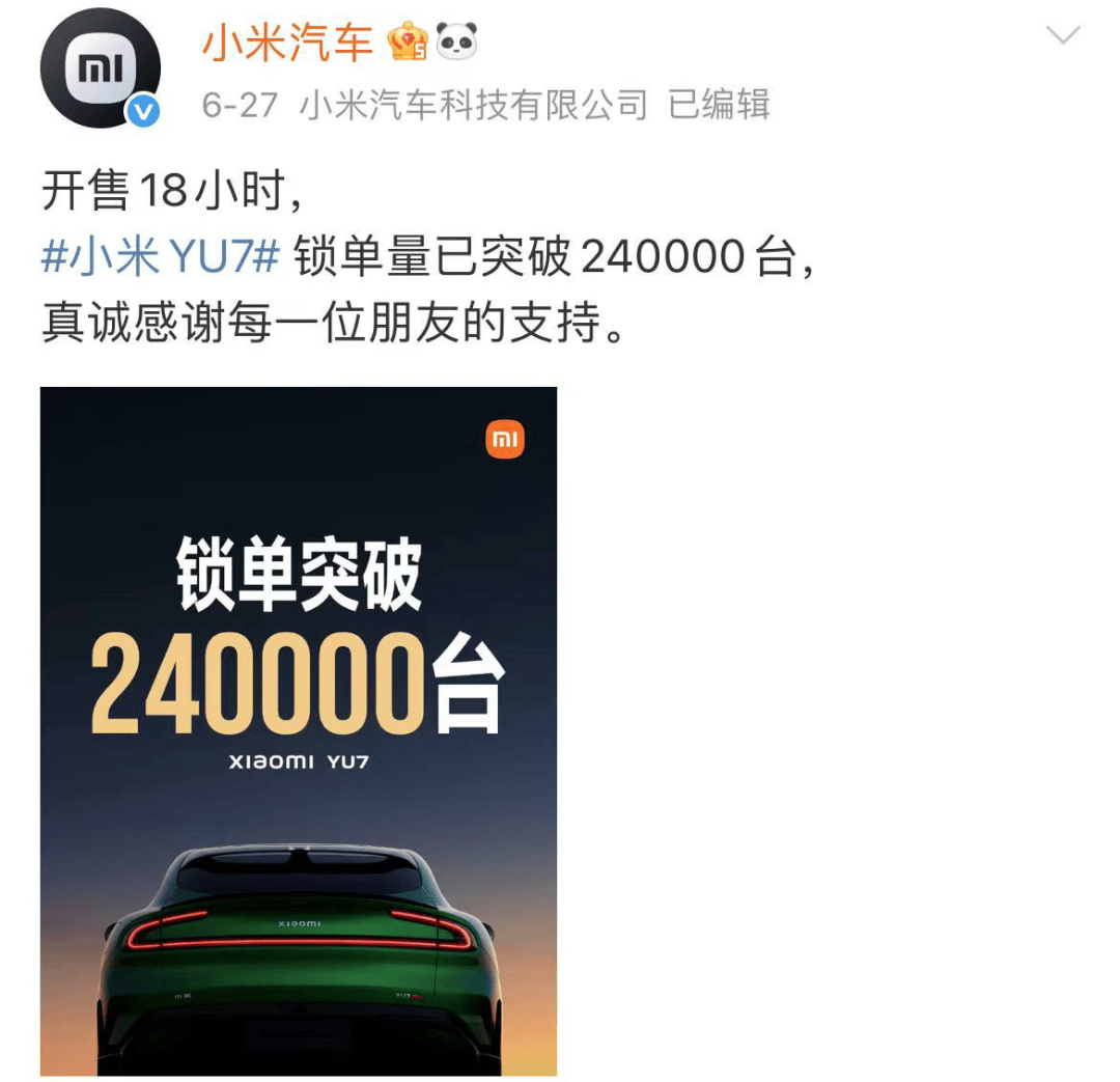 3分鐘大定突破20萬輛,18小時鎖單超過24萬輛,小米YU7井噴的訂單量,對是“甜蜜的煩惱”,但對于苦苦等待交付的準車主而言,只剩苦澀。