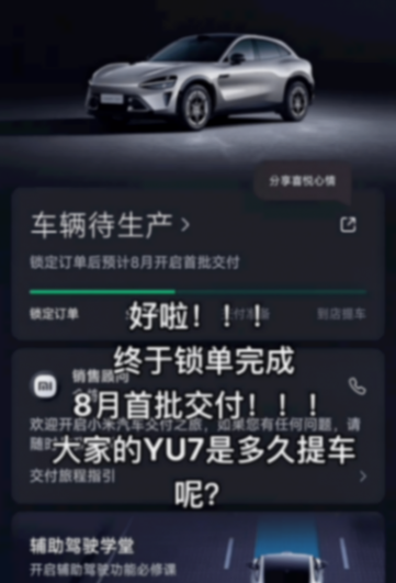 現在下定YU7,用戶能夠看到具體的排產周期,但26日當晚,從下定到鎖單,界面唯一顯示的交付時間信息是“預計8月開啟首批交付”。用戶無從判斷自己是否屬于“首批”交付批次,更無法預估實際交付時間。