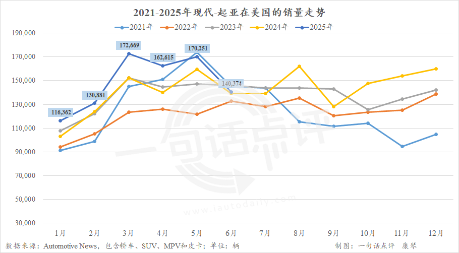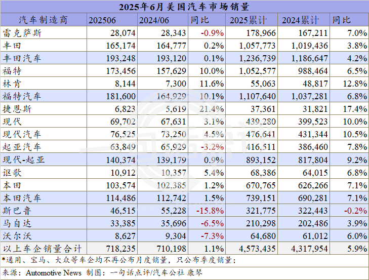 ●現代-起亞受起亞走跌3.2%的影響,6月僅同比增長0.9%,不過二季度仍同比7.9%至47.3萬輛,超過去年12月的46.2萬輛成為集團在美國市場的季度新高,旗下的現代、捷恩斯和起亞品牌也刷新各自的季度最高紀錄。
